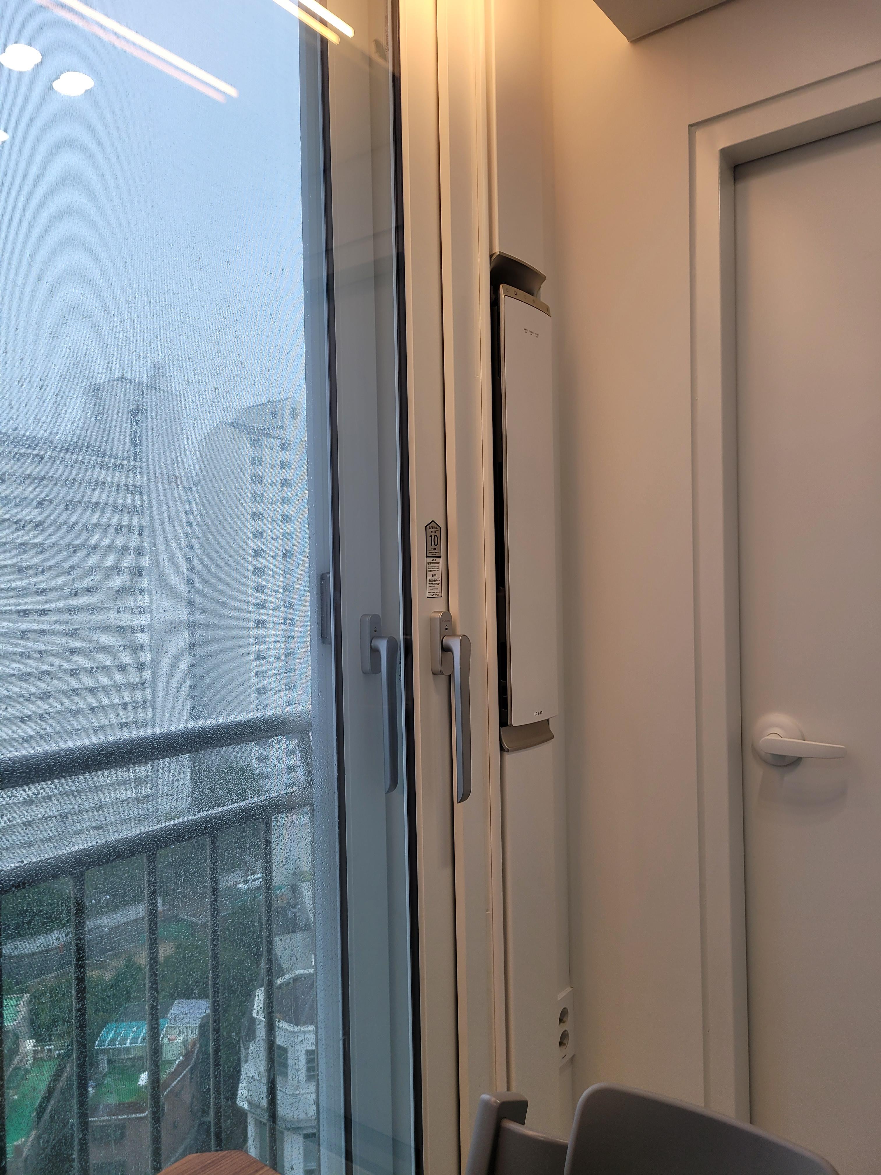 샤시를 새로 넣으면서 전열교환기도 같이 신청하면 LG 지인의 샤시팀에서 와서 수치를 잴때 전열교환기가 설치될 수 있게 샤시 크기를 조절하여 설치한다고 합니다. 저희는 이번에 샤시교환을 포함한 올수리를 하였어서 하는김에 같이 시공하였습니다. 원래는 반대편에 설치하려고 했는데, 에어컨 실외기가 그쪽에 설치되어서 이쪽으로 방향을 바꿨습니다.